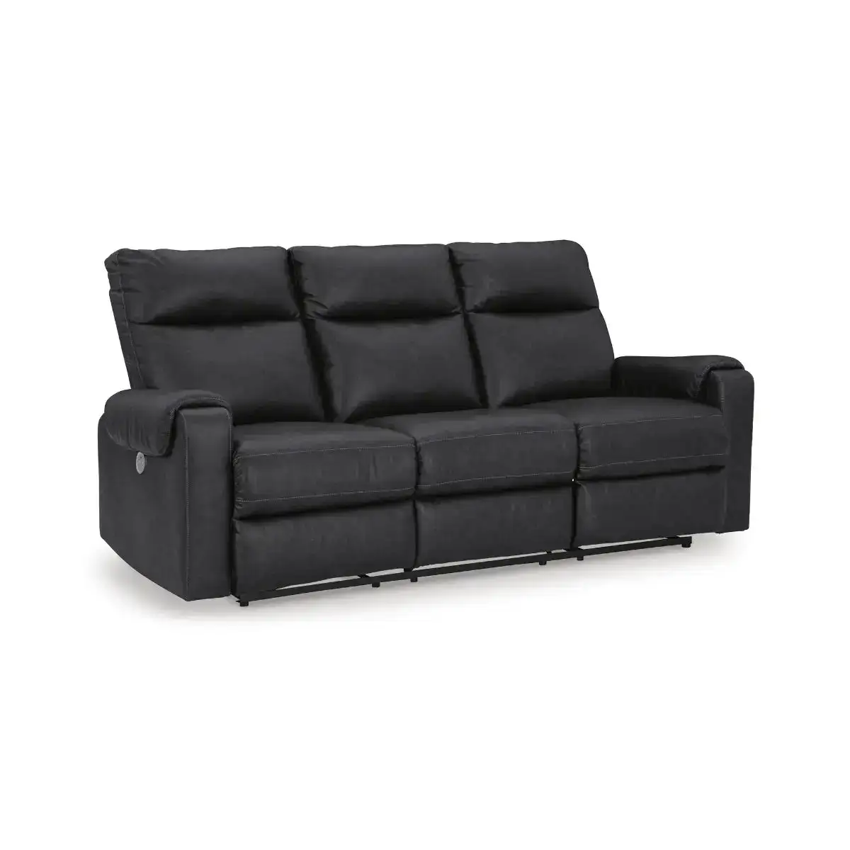 You don’t just want to recline. You want to recline in high design. This power reclining sofa’s clean lines and supple faux leather are out to capture your heart with style and comfort. It gives you the upscale look you want for less—simply take a seat, raise your legs and relax.