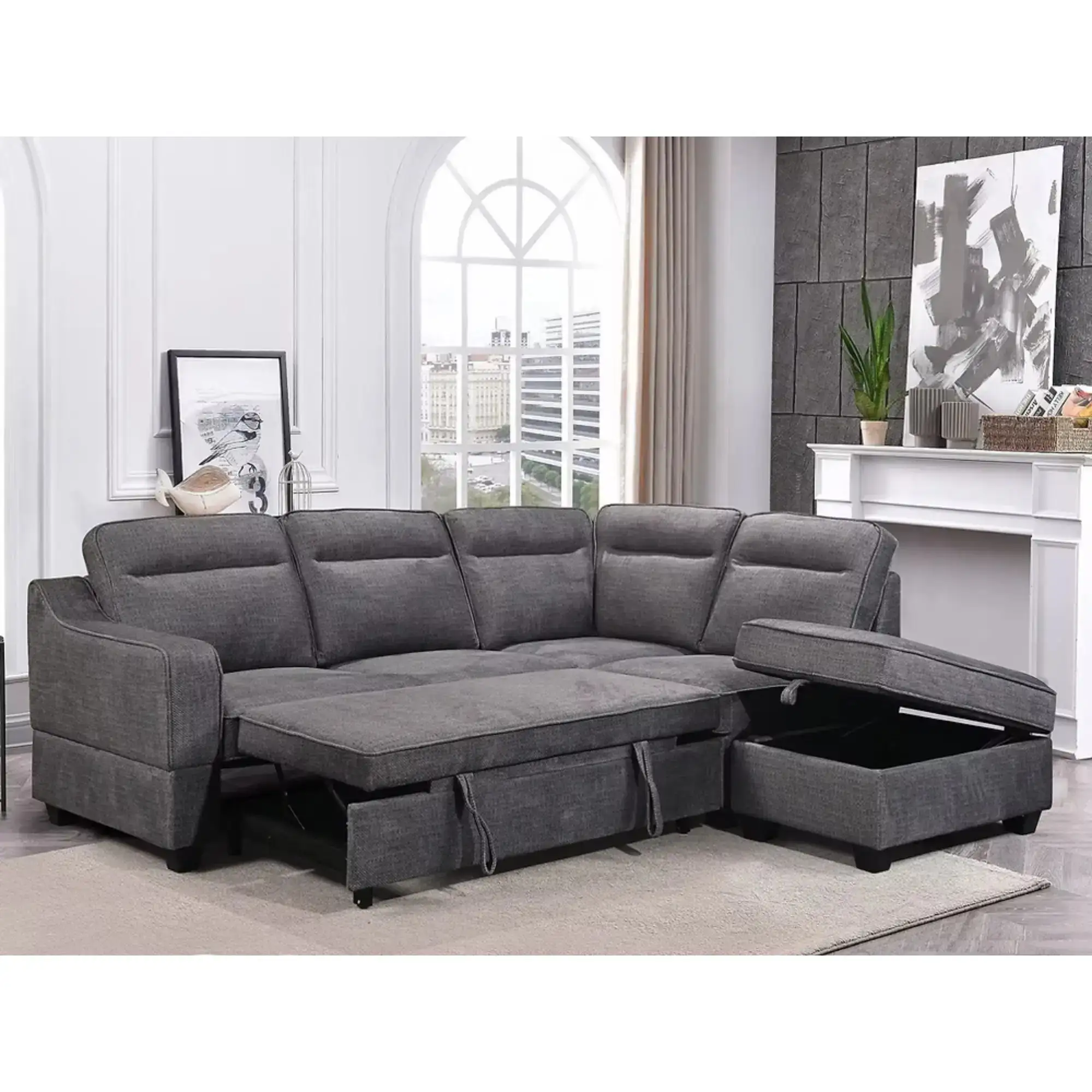 9081 Sofa Bed Sectional in Grey