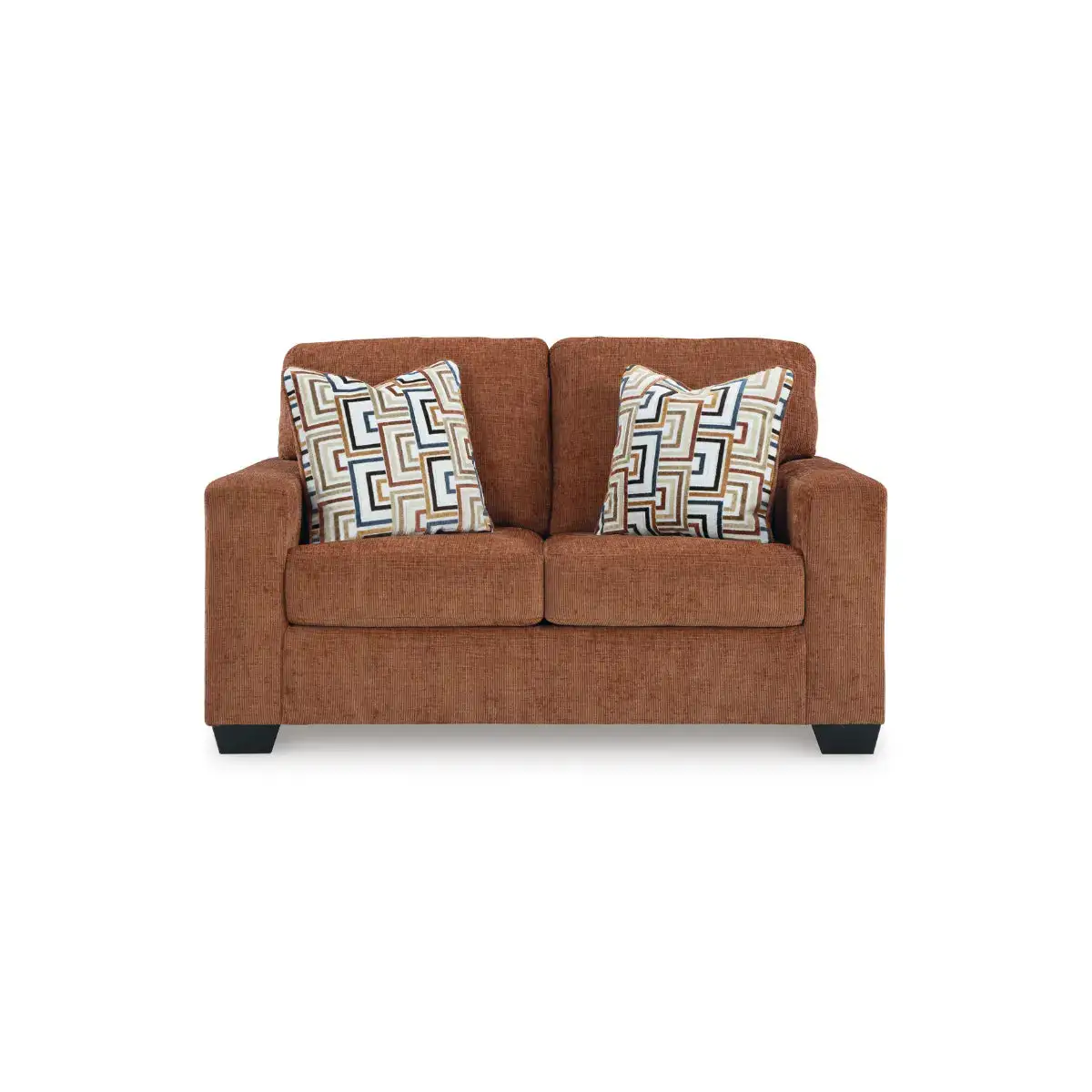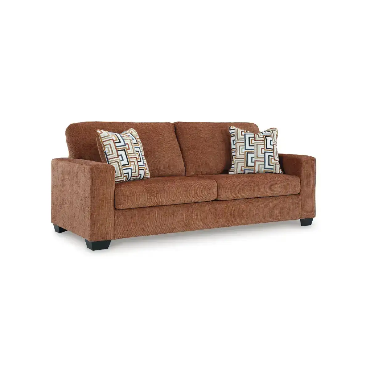 Looking to make a simply chic statement with color? Liven up your living room with this sofa set. Its trend-right light neutral upholstery is a perfect blank canvas for adding pops of color. Bold and eclectic accent pillows complete the look. Pairing posh style with everyday comfort, this piece is a welcome addition to contemporary spaces.