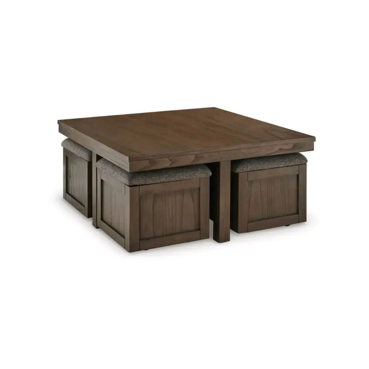 Elevate your entertainment experience with this coffee table with stools. A functional companion for your seating area, it’s defined by a richly versatile finish. Instantly upgrade game days and movie nights—the four stools wheel out easily with casters, tucking away neatly under the table when you’re done. And with storage under the top of each stool, you can keep essentials on hand and out of sight.