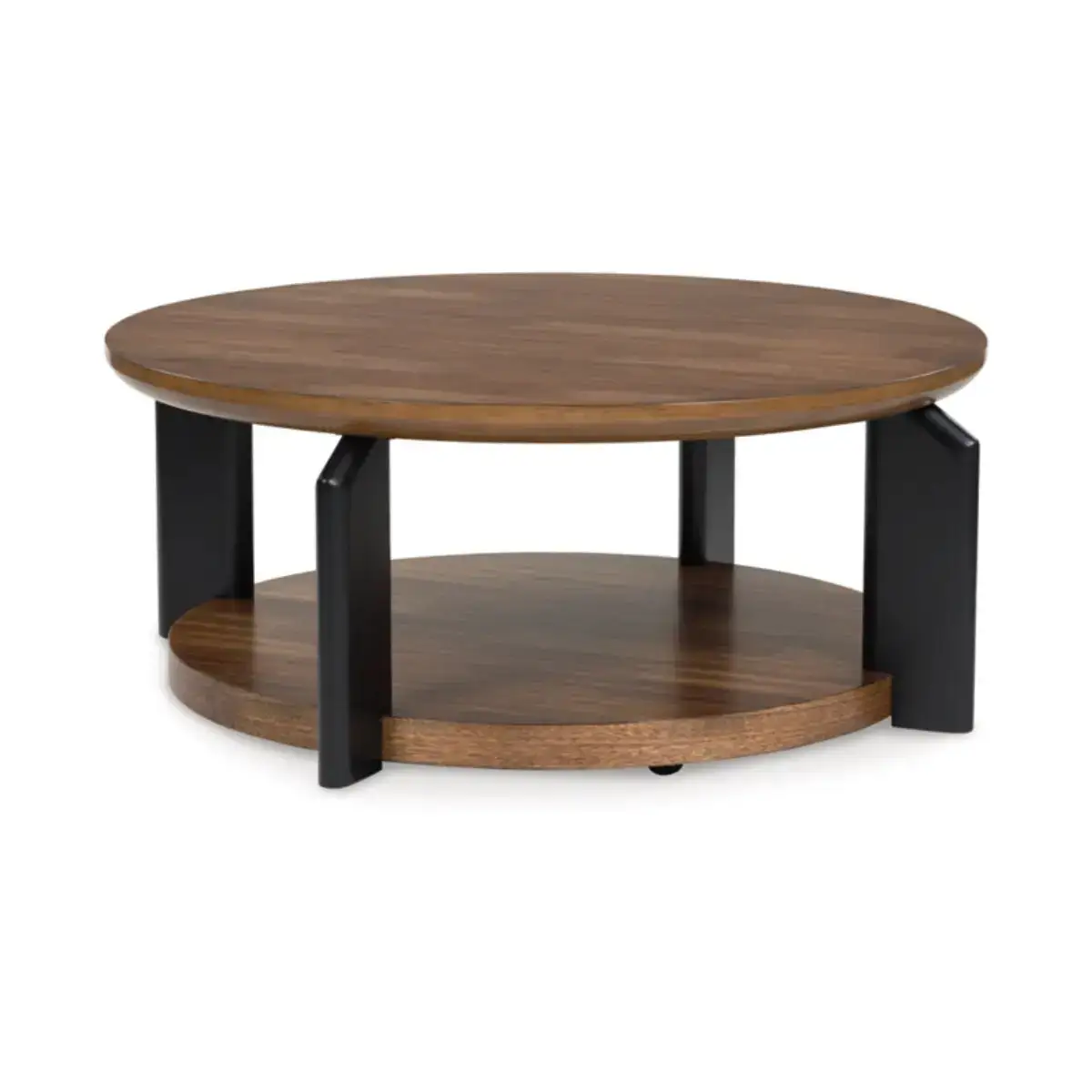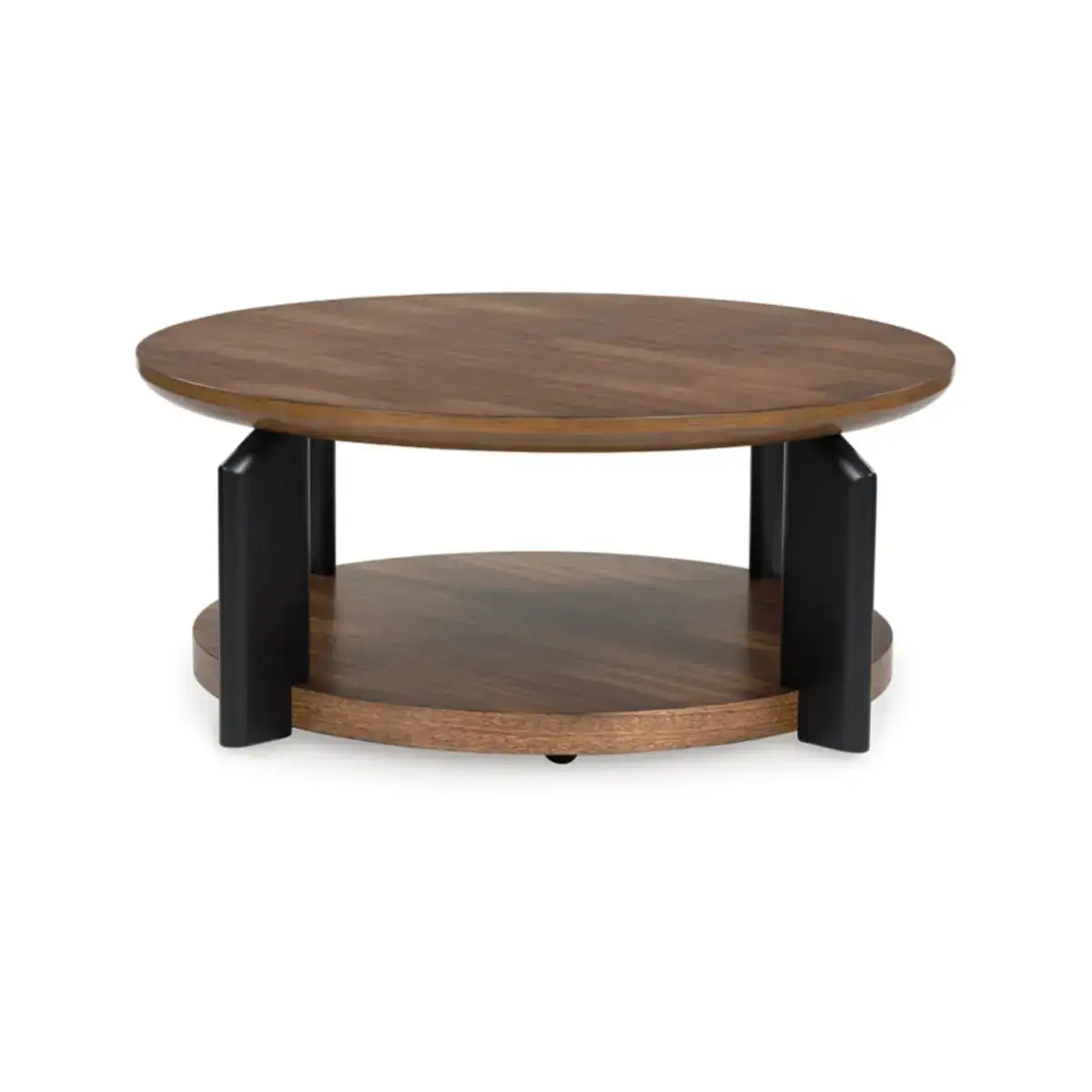 Experience the captivating allure of this coffee table, an effortless blend of casual and refined aesthetics. Its two-tone finish combines satin black with a rich brown wood tone for a modern, relaxed vibe that you'll love. Perfectly suited for your contemporary home, it offers open storage to accommodate your favorite books and accessories. Your search for simple, chic design ends here.