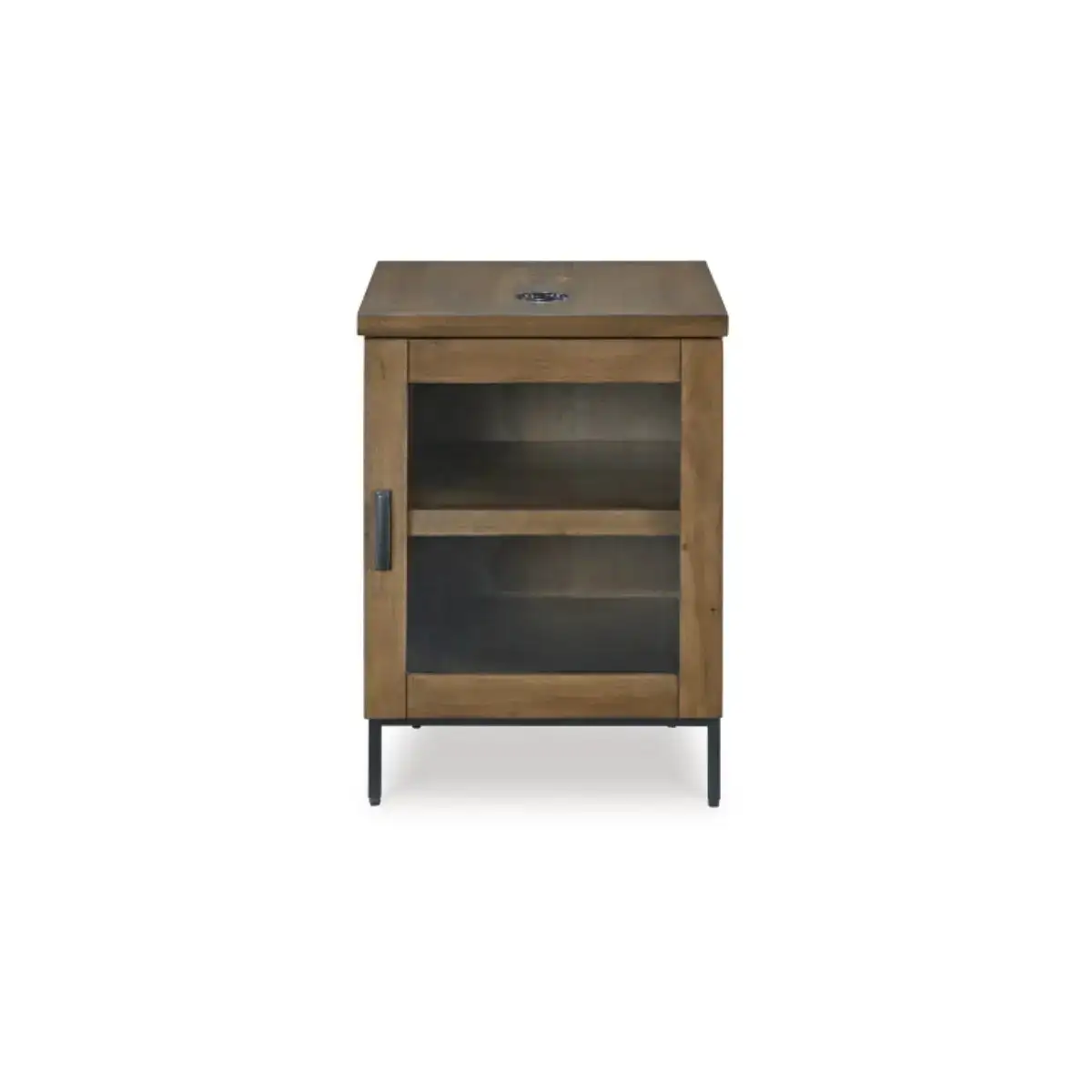 Made for the everyday, this chairside end table is a sleek complement to your casual contemporary living room. You’ll love the refined-yet-relaxed vibe of its contrasting medium brown finish and matte black legs. Simultaneously store and display decor behind the glass-front door. And for added function, a wireless charger keeps your tabletop free of clutter-causing cords.
