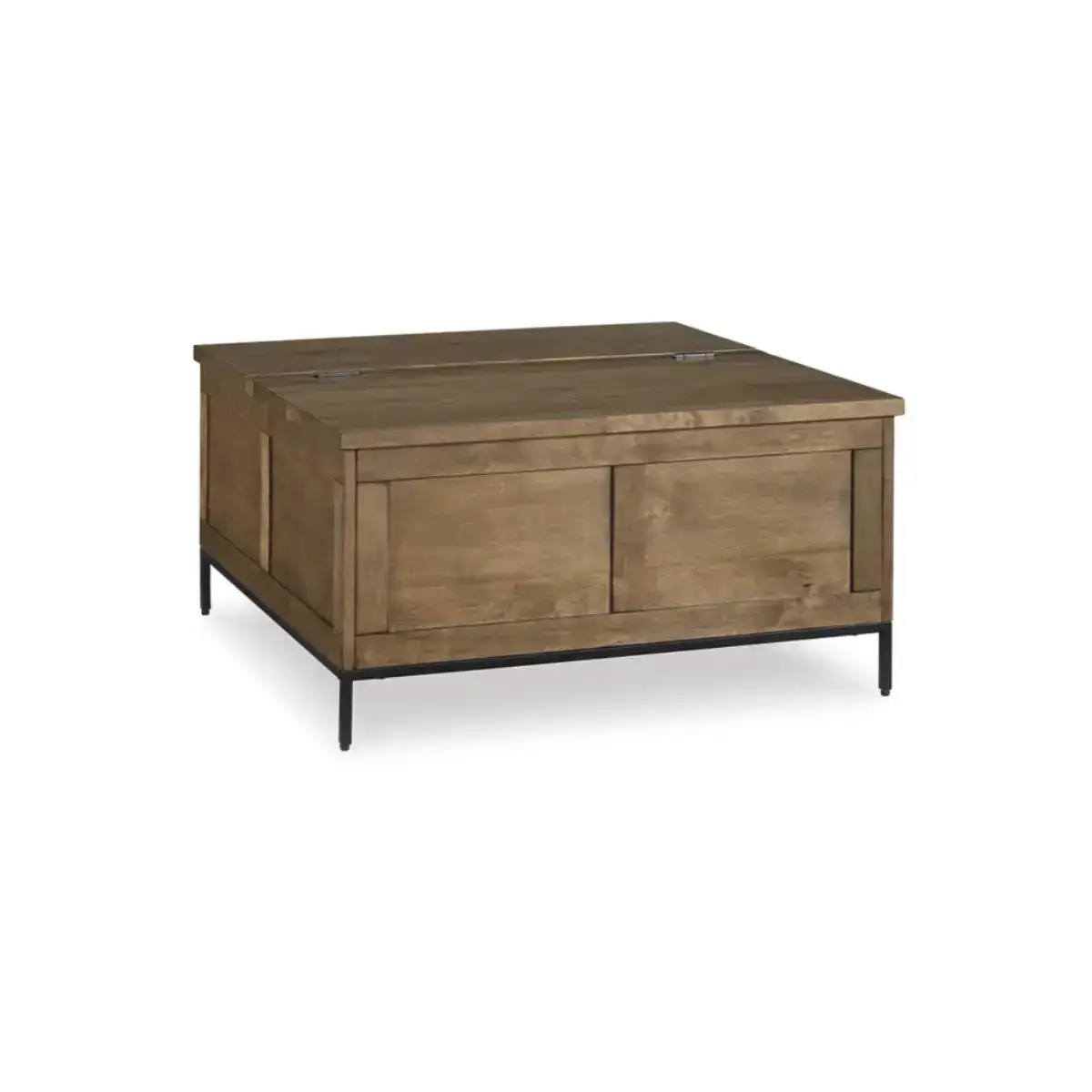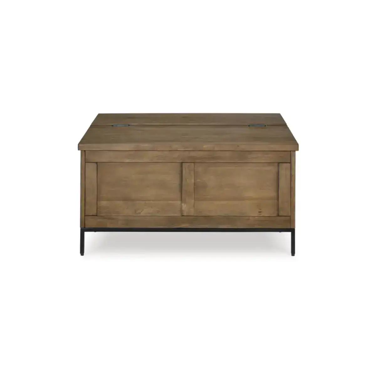 Made for the everyday, this coffee table is a sleek complement to your casual contemporary living room. You’ll love the refined-yet-relaxed vibe of its contrasting medium brown finish and matte black legs. Store throw blankets and more under the spacious hinged lid. And for added function, the other half of the tabletop conveniently lifts to become an instant work from home desk or dining space.